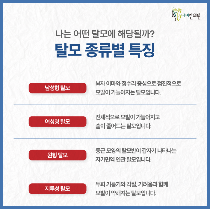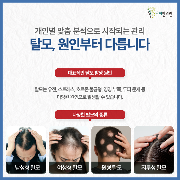 한방에서는 탈모를 외형으로만 분류하지 않습니다.