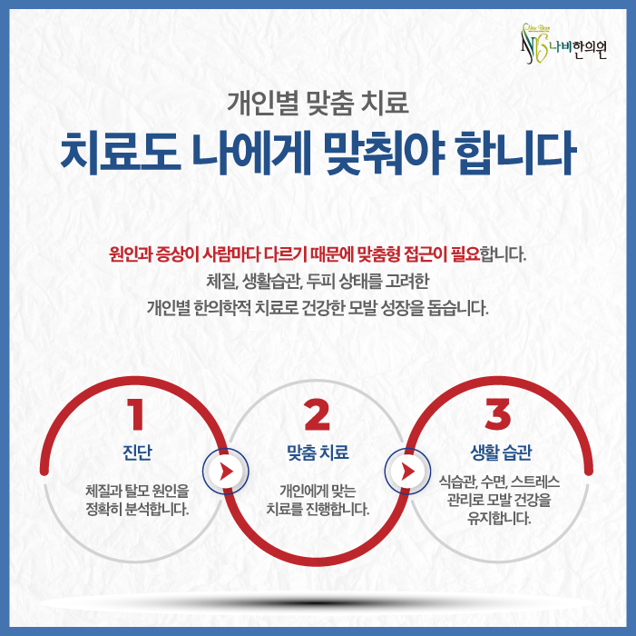 따라서 치료도 머리카락에 국한하지 않고, 몸 전체의 상태를 함께 고려해야 합니다.