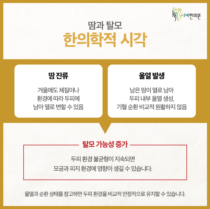 그 중에서도 ‘습열’이 많은 체질은 특히 두피 땀이 많은 편이며